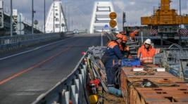 Железнодорожная часть моста должна быть запущена в эксплуатацию в июле, сообщил Хуснуллин. В настоящее время рабочие собирают элементы конструкции моста и готовятся к их монтажу.