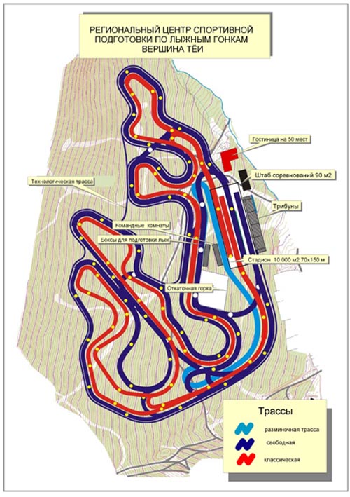 Существующим тейским трассам уже около 40 лет - на сегодняшний день они устарели морально и физически. За этот срок советские (а затем и российские) спортсмены, ежегодно проходившие вкатывание в Хакасии в условиях среднегорья, завоевали более 50 золотых олимпийских медалей.