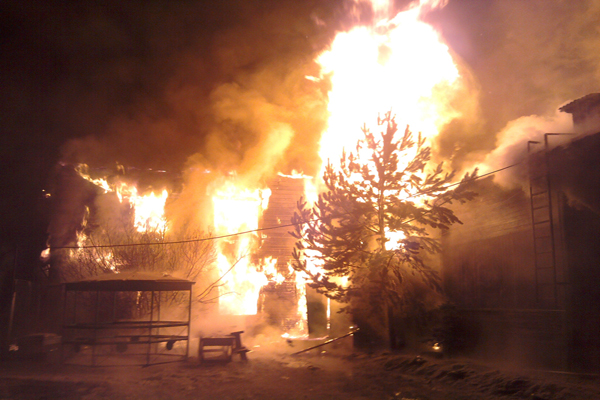 Двухэтажное деревянное здание, в котором располагались сауна и спортзал, горело открытым пламенем на общей площади 600 кв.м. Пожарные сразу отметили, что возгорание было обнаружено слишком поздно, огонь уже успел набрать силу. А по деревянным строениям пламя распространяется стремительно, буквально в течение 10 минут.