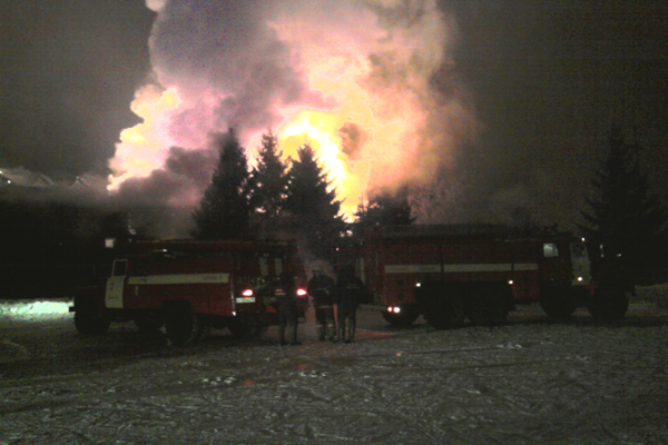 Сегодня ночью в Абакане произошел крупный пожар. Двухэтажное здание, в котором располагались сауна и спортзал, горело открытым пламенем на общей площади 600 кв.м.