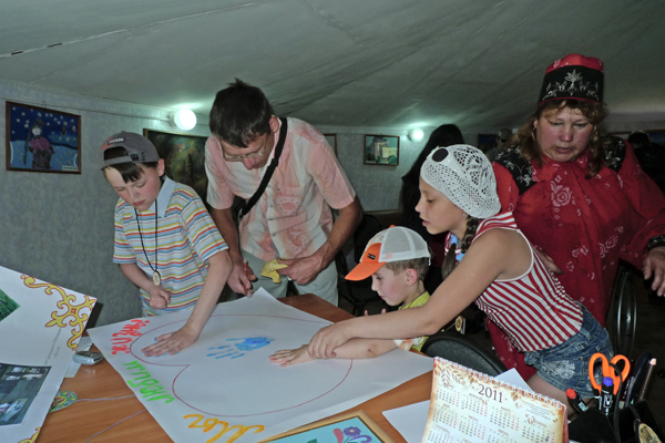 Напоследок всем детям подарили сувениры - амулеты с изображением божества солнца и пожеланиями здоровья и счастья. Ребята с удовольствием приняли участие в акции, посвященной Дню защиты детей, «Мы любим жизнь», оставив разноцветные отпечатки своих ладошек на плакате, сообщает пресс-служба министерства образования и науки РХ.