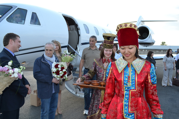 28 июня самолет Хосе Каррераса приземлился в аэропорту г. Абакана. Вместе с мировой звездой прибыли солистка Мариинского театра, заслуженная артистка России Татьяна Павловская и выдающийся дирижер Давид Гименез, которые примут участие в предстоящем концерте. На летном поле почетных гостей встречали представители министерства культуры Хакасии и администрации главы Хакасии. Также в рамках приема прошло выступление фольклорного ансамбля «Айланыс» театра «Читiген» и моделей театра мод Центра культуры и народного творчества им. С. П. Кадышева.