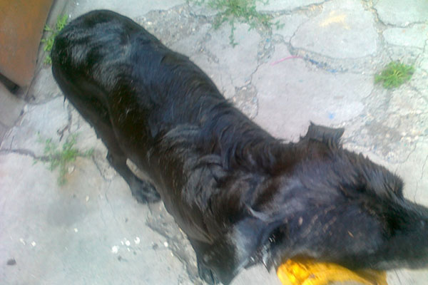 Шокирующий по своей жестокости случай произошел в среду в Абакане. Рабочие, укладывающие асфальт во дворе общежития по улице Кравченко, привязали дворовую собаку за заднюю лапу и окунули в емкость с битумом. Без сил пес добрел до дома, где хозяева 5 часов безуспешно пытались его спасти. Ветеринар, который прибыл по вызову, чтобы усыпить собаку признался, что сталкивается с подобным случаем впервые.