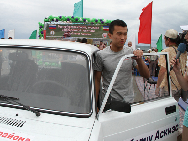 Как рассказали в пресс-службе Минспорттуризма РХ, кандидат в мастера спорта по вольной борьбе Алексей Кочелаков в весовой категории 58 кг выиграл финальную схватку у мастера спорта по греко-римской борьбе Василия Топоева. По мнению авторитетных членов жюри Кочелаков был признан лучшим борцом Аскизского района и получил ключи от машины из рук главы Аскизского района Михаила Побызакова. «Я не ожидал такого поворота событий, пока не могу поверить, что все это происходит со мной. Думаю, что этот день запомню на всю жизнь», - сказал Кочелаков.