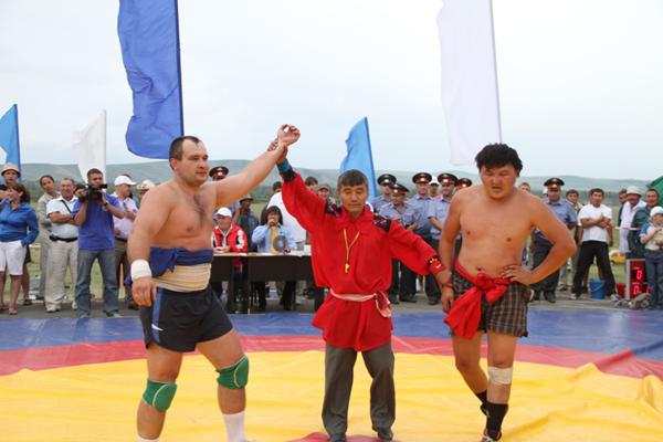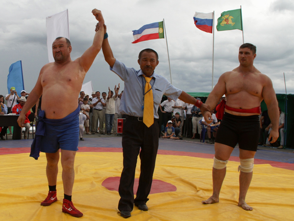Отметим, что площадка, на которой в день празднования открылся фестиваль национальных видов спорта, пользовалась большим вниманием зрителей. Поединки проходили с 13 часов до позднего вечера. Давно опустели остальные площадки праздника, и только фестиваль по национальным видам спорта, не смотря на испортившуюся погоду, продолжал удерживать зрителей. Здесь в разное время проходили соревнования по поднятию камня «хапчан тас», национальным шашкам «тобит», перетягиванию палки, соревнования лучников и скачки.