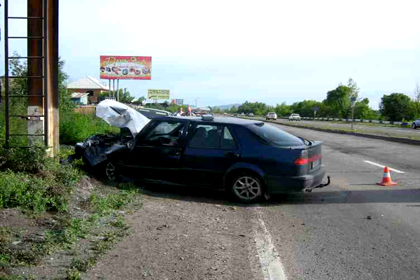 9 июля на 406 км. автодороги «Енисей» (Усть-Абаканский район) водитель автомобиля «Saab», двигаясь со стороны Черногорска в Абакан, допустил наезд на бордюрный камень разделительной полосы, а после этого наезд на железную опору теплотрассы, находящуюся в кювете.