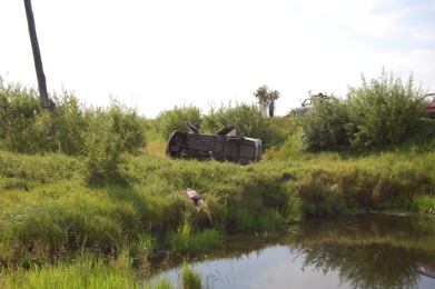 На место аварии была вызвана бригада пожарного расчета. Им пришлось извлечь тело одной женщины из автомобиля, так как ее там зажало, а тело другой выловить из небольшого водоема, располагавшегося в нескольких метрах от упавшей машины.