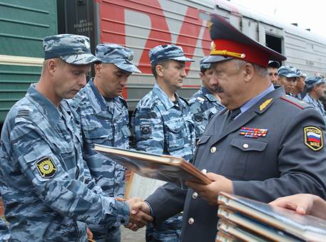 С раннего утра на перроне абаканского железнодорожного вокзала руководство МВД Хакасии, родственники и друзья с нетерпением ждали бойцов сводного отряда полиции, возвращающихся с Северо-Кавказского региона. Долгожданный поезд привез наших ребят домой в 7.40 утра.