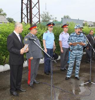 Торжественная встреча началась с приветственных слов заместителя председателя правительства республики Владимира Крафта и министра внутренних дел республики Ильи Ольховского, которые отметили мужество и стойкость хакасских полицейских. Кроме этого, министр выразил благодарность командиру сводного отряда Евгению Мартынову за умелые профессиональные действия, благодаря которым хакасский сводный отряд вернулся домой без потерь.