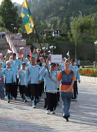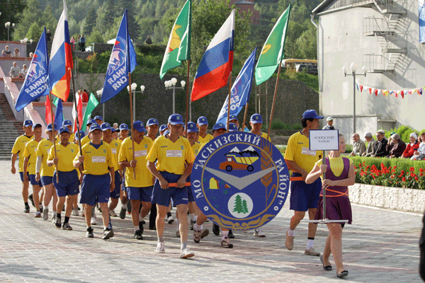 В торжественном строю маршировал старейший участник спартакиады, член сборной ветеранов Саяногорска Николай Задорин. 72-летнему, мастеру спорта по борьбе самбо не только доверили нести флаг родного города, но и поручили исполнять обязанности капитана команды.