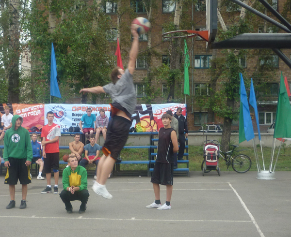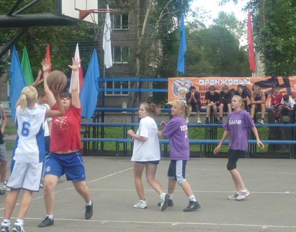 Абакан принимает участие во Всероссийских массовых соревнованиях по уличному баскетболу «Оранжевый мяч», суть которых в том, что в нескольких регионах юные спортсмены одновременно играют в баскетбол на одно кольцо.