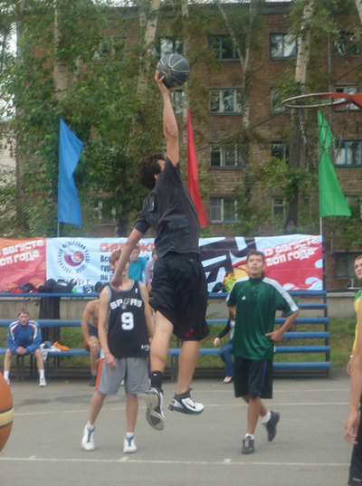 13 августа. Пасмурное небо Абакана. Но, не смотря на это, на спортивных площадках Черногорского парка вовсю кипит баскетбольная жизнь, участники которой не обращают внимания на прохладную погоду и серые тучи. Спортсмены подбирают и забрасывают мячи, чувствуется хорошая спортивная атмосфера.