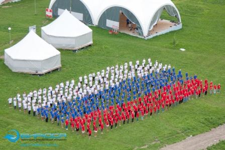 Сразу после лекции молодые лидеры отправились на бирюсинскую поляну, чтобы принять участие в масштабной акции. С высоты полёта вертолета снимали и фотографировали флаг России, составленный из участников в футболках цвета триколора.