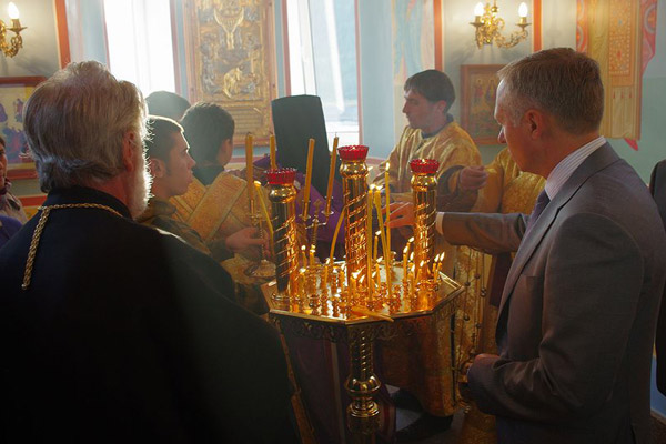 В часовне в честь Иконы Божьей матери «Живоносный источник», построенной на территории СШГЭС в память о погибших в аварии, поминальный молебен совершил Епископ Абаканский и Кызылский Ионофан.