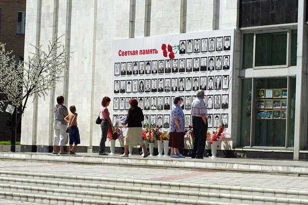 К «памятным доскам» - плакатам с портретами погибших и живыми цветами в холле Саяно-Шушенской ГЭС, машинном зале станции, на каждой технологической отметке - 310, 315, 320, 327 и здании «КрасноярскГэсСтроя», в течение всего дня шли энергетики, чтобы вспомнить своих товарищей.