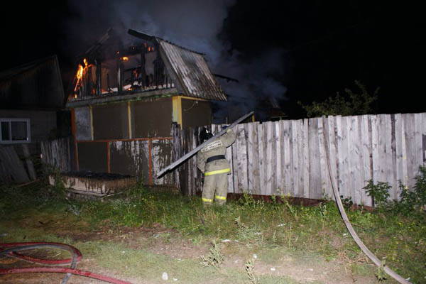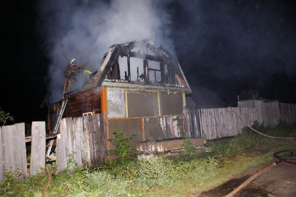 На момент прибытия первого боевого подразделения строение горело открытым пламенем по всей площади в 30 кв.м. В течение получаса пожарные боролись с огнем, не дав пламени перекинуться на расположенный рядом жилой дом.