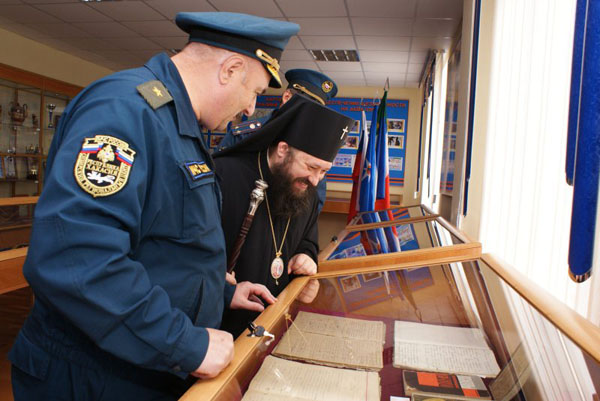 Владыка поблагодарил и начальника Главка за подробную экскурсию, сказал, что все увиденное очень его впечатлило: «Мне понравилась четкая организация, дисциплина, люди, ваша открытость, преданность делу. Когда видишь такую слаженную работу, ощущаешь себя спокойнее. Приходит понимание, что за ситуацией в республике следят специалисты, у них все под контролем, можно не волноваться». Архиепископ отметил, что работа, которую приходится выполнять сотрудникам МЧС, трудная, так как требует постоянного внимания и напряжения. «Позвольте засвидетельствовать, что морально мы всегда вам поможем, и все силы приложим к тому, чтобы вместе с вами помогать людям, пострадавшим от природных или техногенных катастроф».