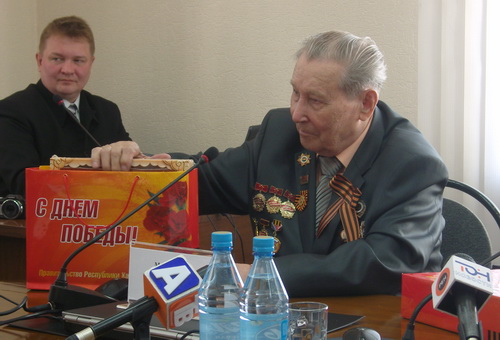 Первым слово взял Михаил Яковлевич Мартынов. Ветеран поблагодарил правительство республики, республиканский совет ветеранов и всех тех, с чьей помощью ветераны смогли поучаствовать в московском Параде Победы.
