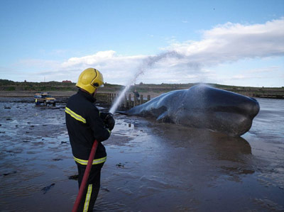 Оборудование, которым пользовались спасатели позволяло вернут в море существо весом до 5 тонн, но погибший кит весил в 4 раза больше. Пожарным оставалось только поливать кашалота водой из шлангов, поддерживая в нем жизнь.