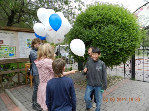 Встретив маленьких гостей на входе в парк, руководитель хакасских молодогвардейцев Анастасия Дулуб поздравила ребят с началом лета и подарила им воздушные шары, которые сопровождали детей в течение всего дня.