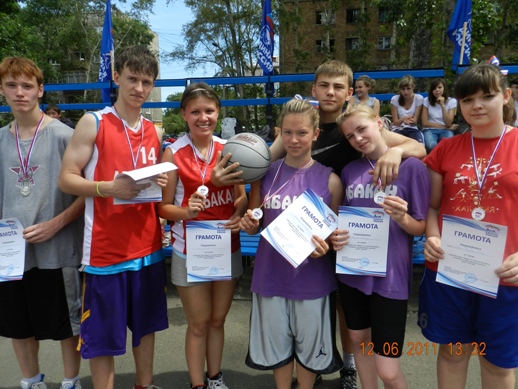 На баскетбольных площадках было не менее жарко. Здесь помимо командных соревнований, победители определялись и в индивидуальном зачете, юноша и девушка, отметившиеся наибольшим количеством дальних попаданий получили в награду новенькие футбольный и волейбольный мяч соответственно, а игрок, забросивший мяч в корзину с середины поля, унес, вернее, унесла (победительницей оказалась девушка) домой баскетбольный мяч. Медали и грамоты стали наградами для победителей и призеров стритбола.