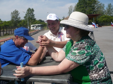 В Парке культуры и отдыха также было многолюдно. Здесь проводилось открытое первенство Абакана, посвященное празднованию Дня России, по многоборью среди лиц, использующих для передвижения коляску. Участники соревновались в гонках на колясках, в фигурном вождении коляски, в дартсе и армрестлинге. Победители и призеры получили отличные призы от «Единой России».