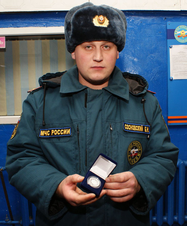 Дознаватель отдела надзорной деятельности г. Черногорска лейтенант внутренней службы Борис Сосновский отмечен медалью МВД «За укрепление правопорядка». При расследовании причин одного из пожаров, сотрудник МЧС сумел задержать гражданина, подозреваемого в поджоге. С помощью пожарного МЧС органам внутренних дел Черногорска удалось раскрыть преступление, в результате которого пострадало имущество сразу трех домовладельцев.