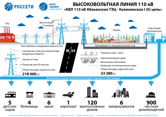 Сама линия, как энергообъект хакасской распределительной энергосистемы является уникальной благодаря применению технических инноваций. Общая протяженность ее составила более девяти километров. Половину линии энергетики пустили под землей кабелем из сшитого полиэтилена, который позволяет увеличить срок службы оборудования без ремонта на 30 лет. При строительстве энергетики использовали немало новшеств: элегазовые выключатели на подстанции Калининская, устройства телеметрии и телемеханики, которые позволяют управлять работой дистанционно, средства диагностики и мониторинга, микропроцессорные устройства релейной защиты и автоматики - все это дает дополнительную надежность.