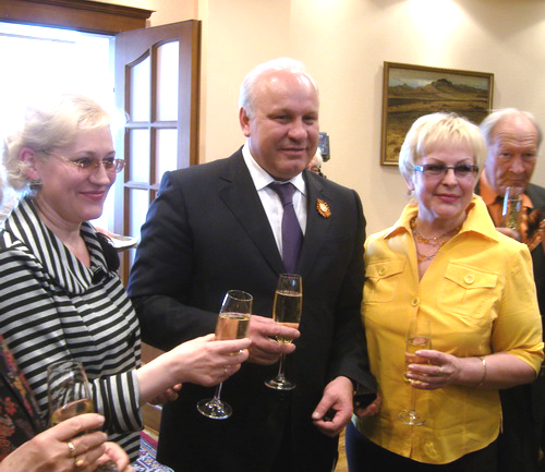 Виктор Зимин вручил гостям благодарственные письма и цветы, а после официальной поздравительной части обратился к ним с несколькими предложениями.