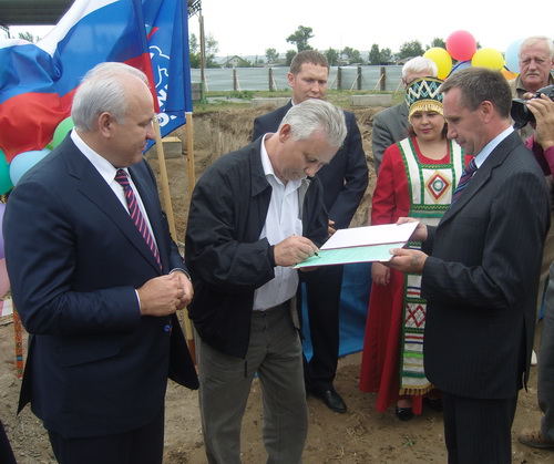 Сегодня в селе Белый Яр Алтайского района Хакасии состоялась торжественная закладка первого камня в основание будущего спортивного комплекса. Капсулу с посланием будущему поколению в основание спортивно-оздоровительного комплекса «Колос» заложили председатель правительства Хакасии Виктор Зимин, министр спорта, туризма и молодежной политики Хакасии Валерий Денщиков, а также глава Алтайского района Владимир Пономаренко.