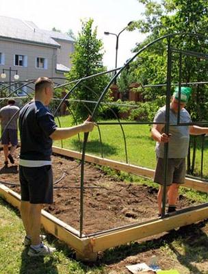 На территории саяногорского пансионата ветеранов волонтеры-металлурги установили теплицу. В ближайшее время в ней высадят рассаду, чтобы совместно с постояльцами вырастить собственный урожай.